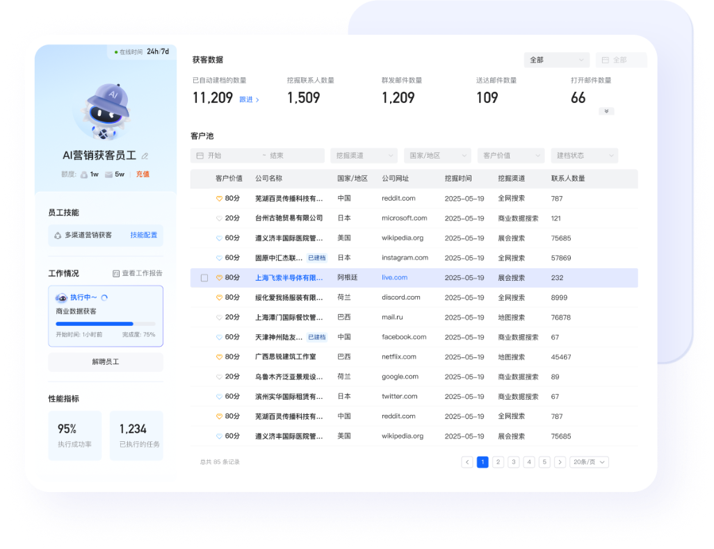 通过Prompt编排工程,精准引导AI执行特定任务,如生成营销邮件、查询订单信息等,实现个性化操作,提升工作效率。在AI获客中,提示词用于配置参数,如输入目标客户特征,指挥多渠道爬取等,助力精准获客。