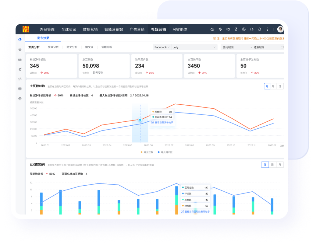 对粉丝好友进行巡检互动,及时回应留言评论,针对高价值潜在客户,AI精准发送定向私信;